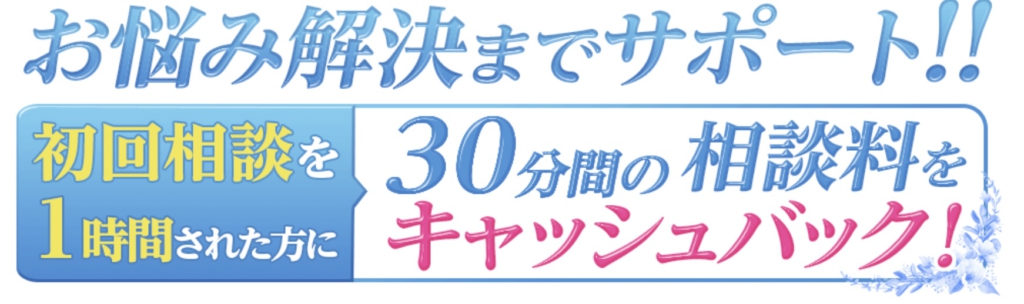 初回相談を1時間された方に30分間の相談料をキャッシュバック!!